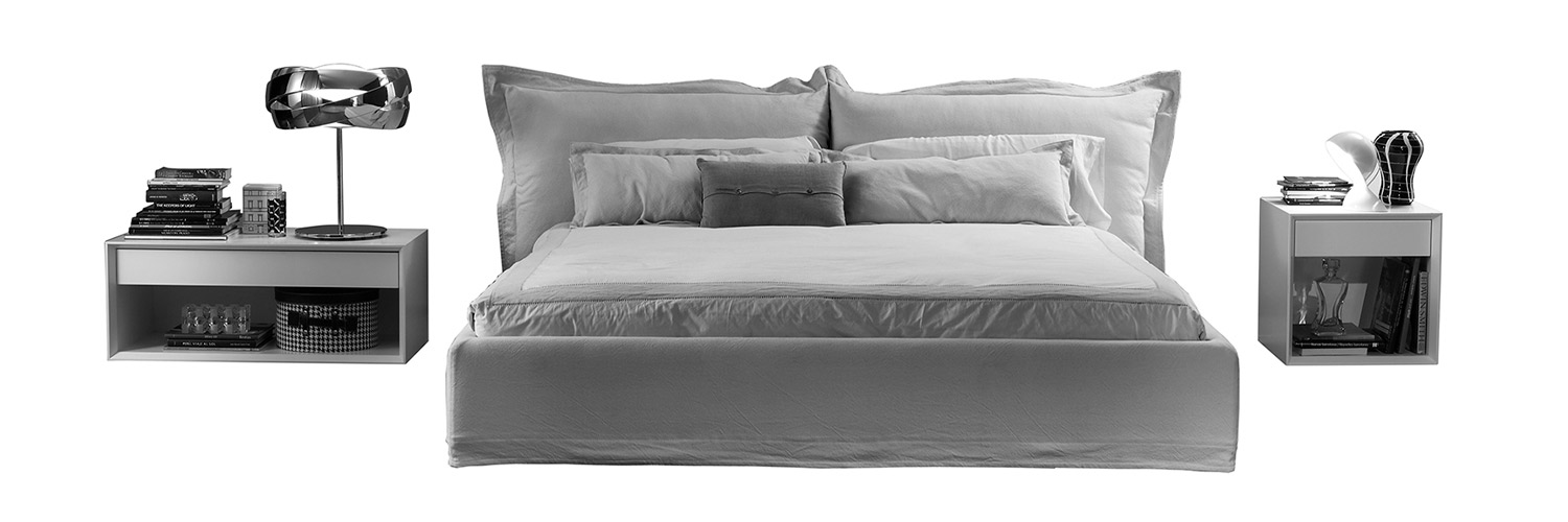 La cama Dalí es extravagante, es distinta, es especial, es …. es simplemente genial! Dalí es Dalí. Un producto único en cuanto a riqueza visual y simplicidad conceptual. Sus formas sinuosas y los volantes de sus cojines lo definen como una pieza singular. Dos grandes, bellos y confortables almohadones sustentados por una estructura metálica tubular (signo de identidad de la colección) hacen la función de cabezal de cama aportando una gran comodidad al conjunto. Así mismo, todo el aro de la cama presenta un volante en su parte inferior, evocando el efecto de funda suelta que transmiten sus almohadones. Las camas Dalí se presentan en todo tipo de medidas para adaptarse a cualquier colchón, además, permite la regulación interna de la altura del colchón respecto al aro para conseguir el efecto deseado según el colchón y el somier seleccionado.