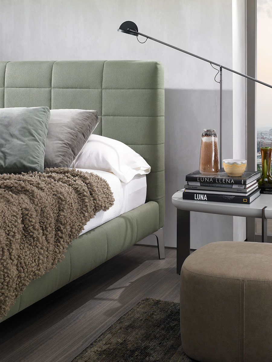Verona was created as a bed of pure and simple lines giving it a sweet elegance. The system of its support provokes a floating effect which emphasises its aesthetic shape. The thinness of the headboard allows it to be adapted to multiples existing spaces where dimensions are limited. The upholstery is completely removable and is available in fabric or leather. The collection also includes bed and benches.