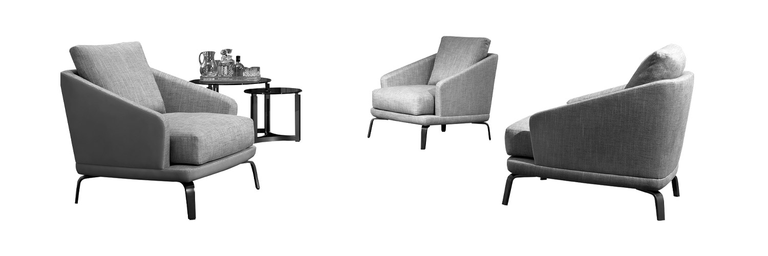 The armchair Chloe implies a leap back to the memories of traditional design, always present in our memory on account of its eloquently formal elegance. Its curvilinear shape makes it friendly and suitable for any space, whether home or contract.The metallic foot confers a modern finishing and softens the joint between the structure and the foot itself. The back cushion and the seat cushion contribute to the great comfort of this armchair.