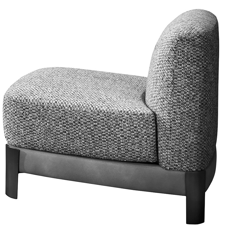 Olivia seating, of fluid organic forms that swirl and interact, is supported by curved integrated legs. A combined use of materials colour and texture throughout, define this sturdy piece where we see craftsmanship at its best. The base may be upholstered in faux leather or in the same textile as the seat. Simplicity of form permits this piece to adapt to most environments whether that be home or the contract space.