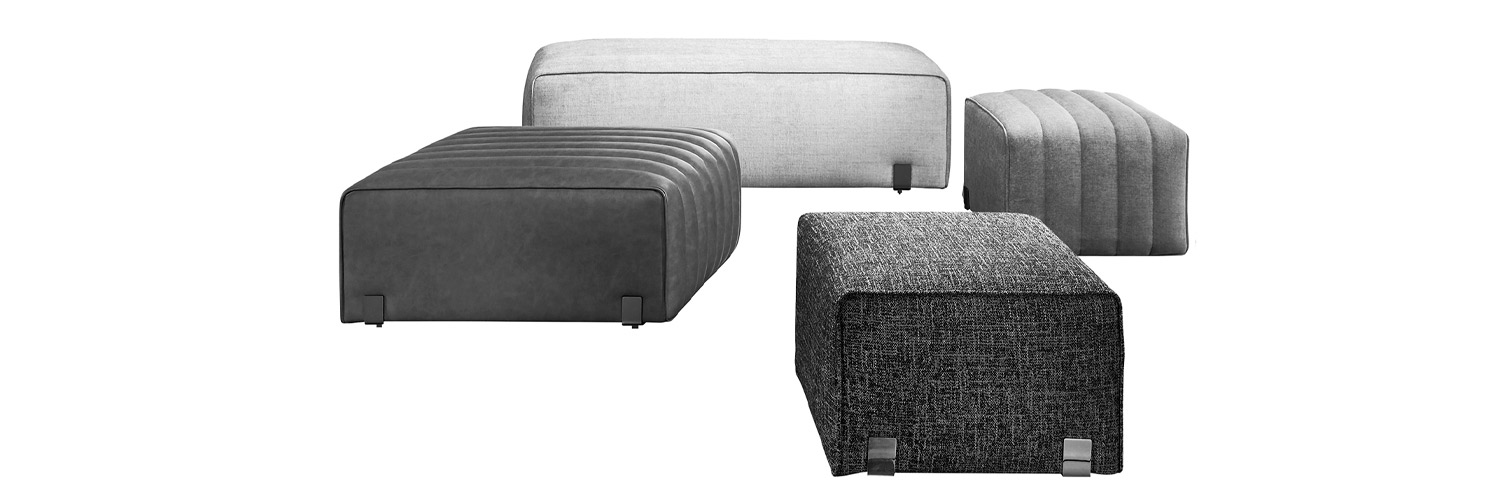 Rix is a collection of square and rectangular poufs which comes in two versions: with completely plain fabric or with rows of quitted stitches on some parts of the surface, which endows the product its unique character. The different sizes and shapes permit to place them as an auxiliary piece in living rooms as well as in bedrooms. They show two beautiful details: the piping all around its contour and feet in metal, which adds Rix this touch of distinction and elegance.