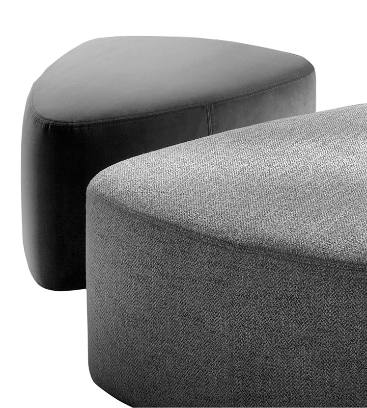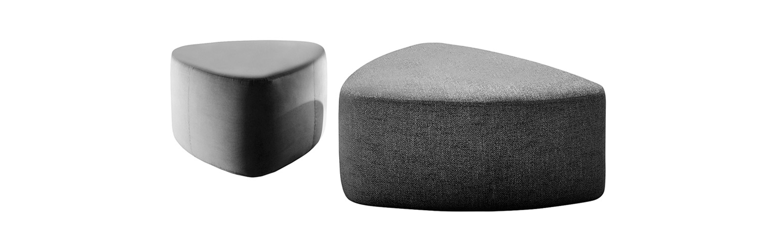 The pouf collection Rocks stands out for its triangular shape. This permits to combine them easily among each other and/or place them individually. They are available in different sizes in order to create non-uniform spaces. Its particular shape permits to suit with the table collection Levy in order to create big flexible spaces in the center. This fusion permits to make the space where you place them bigger or smaller depending on the needs and on the moment.