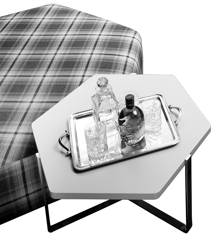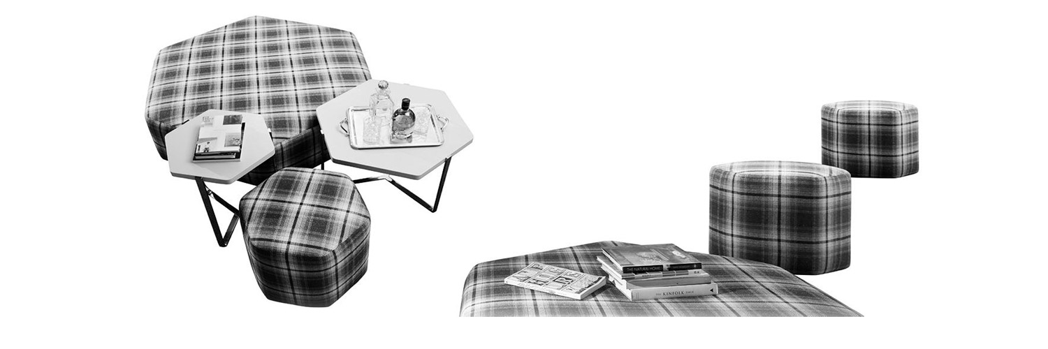 The pouf collection Sixties stands out for its hexagonal shape. This permits to combine them easily among each other. They are available in different heights and width in order to create non-uniform spaces. Its particular shape permits to suit with the table collection Prince in order to create big flexible spaces in the center. This fusion permits to make the space where you place them bigger or smaller depending on the needs and on the moment.