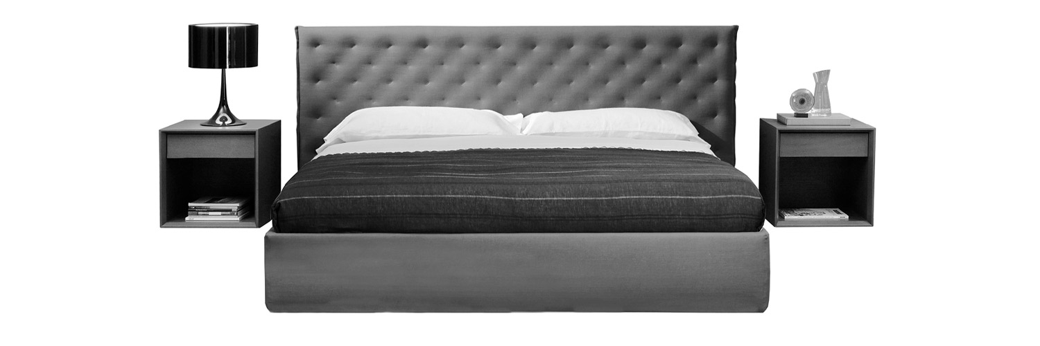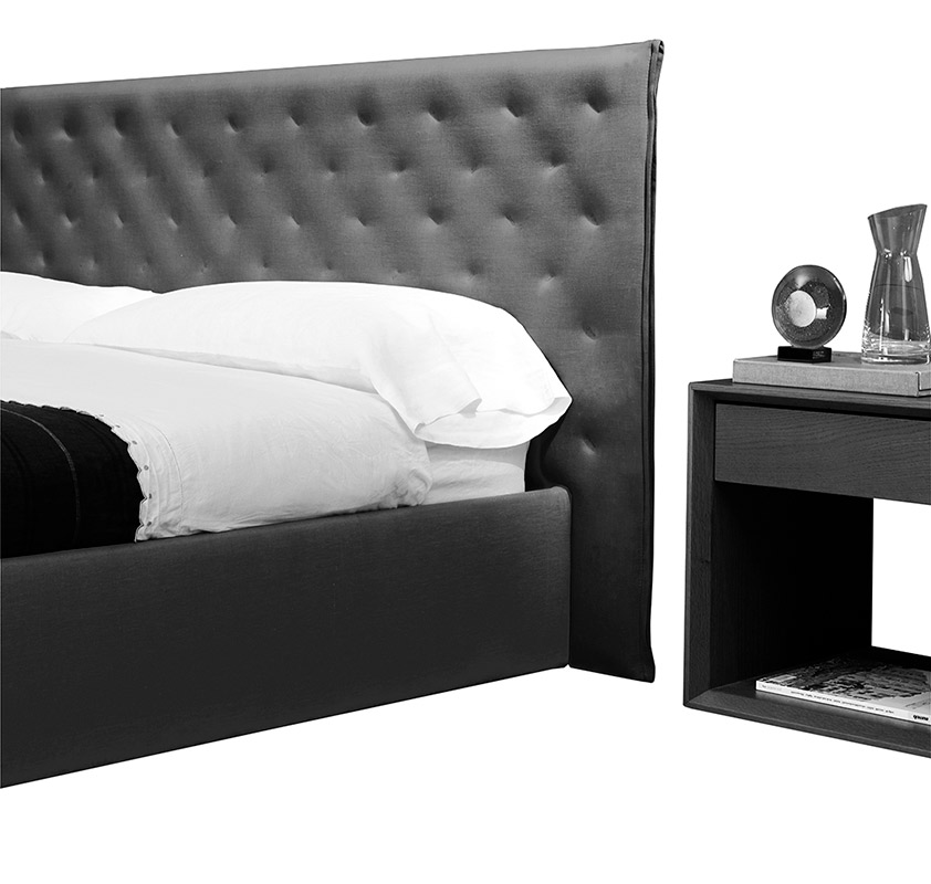 Valeria is a bed with clean and simple lines, with a touch of sophistication due to its capitoné with blunts. The thinness of the headboard as well as the frame allows it to be adapted to modern interiors where space is limited. It comes with a levelling system in order to adjust to the different sizes of slats and mattresses. The upholstery is completely removable and almost all parts can be detached.