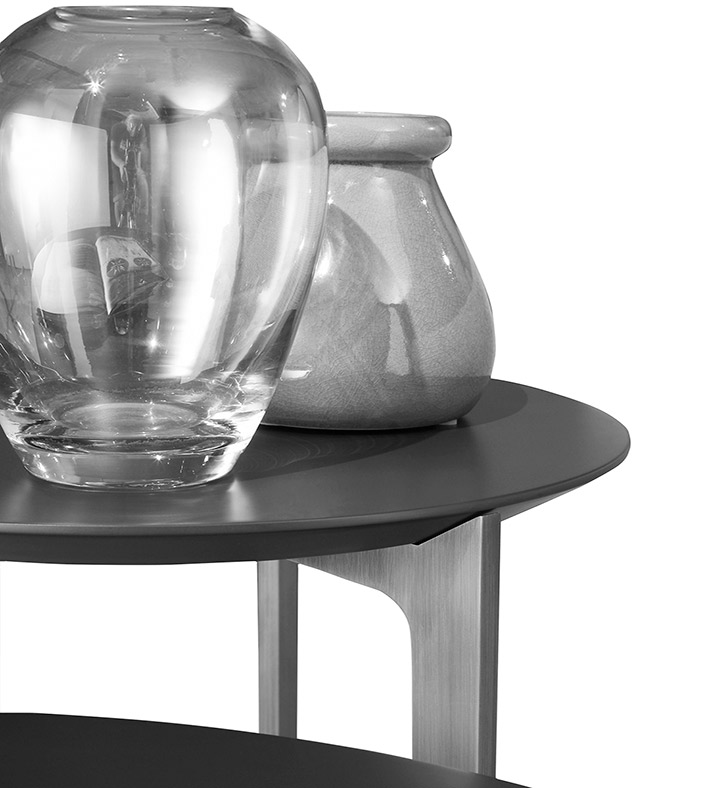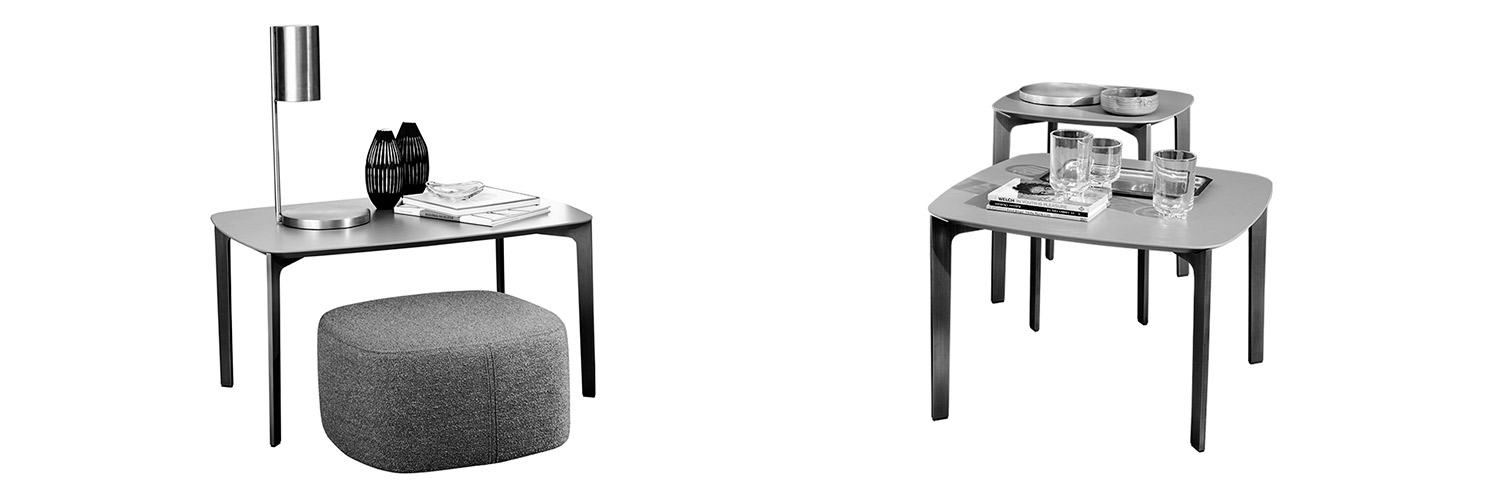 The Dune table, notable for the meticulous beveled edge and lacquered top that join together with absolute precision. The metallic integrated legs support this table top in perfect harmony as hand in glove. The collection is completed by auxiliary, corner and coffee centre tables of various dimensions, heights and forms.