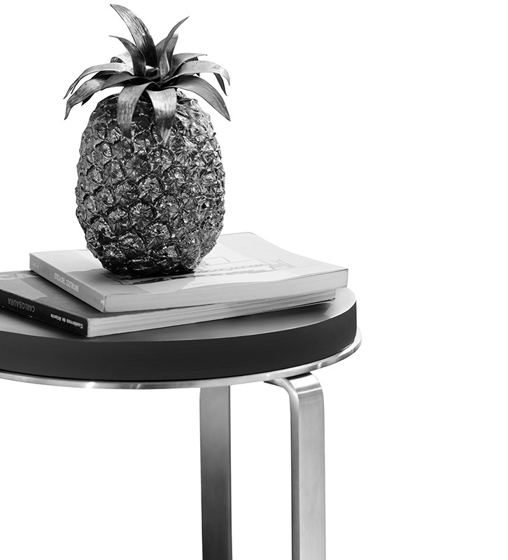 Ginger is a collection of round side tables, available with top  lacquered . The metal structure in stainless steel is made of two rings and three thin vertical upright profiles, which confers it stability and transparency. A piece with a great visual lightness with a wide range of different measurements and heights, thus allowing to place it easily in any part of the house, The tables Ginger can be combined with the pouf collection Brent to create combined sets of tables and poufs.